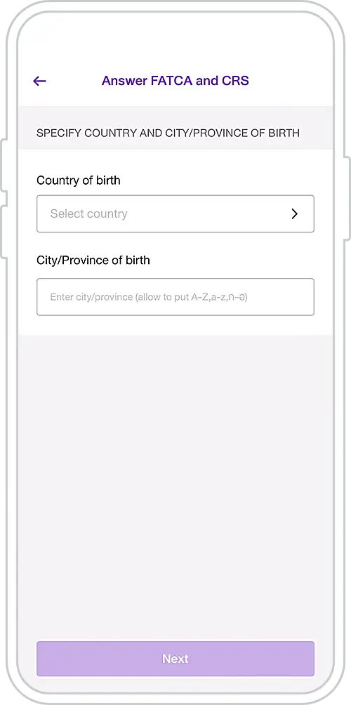 13. Enter your “Country of Birth and City/Province of Birth”, then tap “Confirm”.