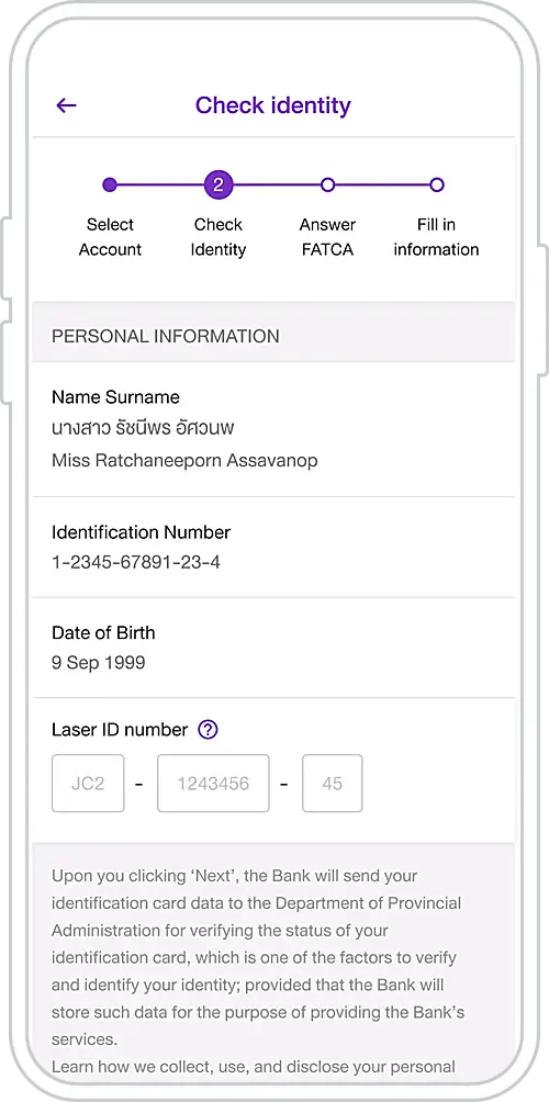 6. Enter the “Laser ID Number” and click “Next” to verify your identity