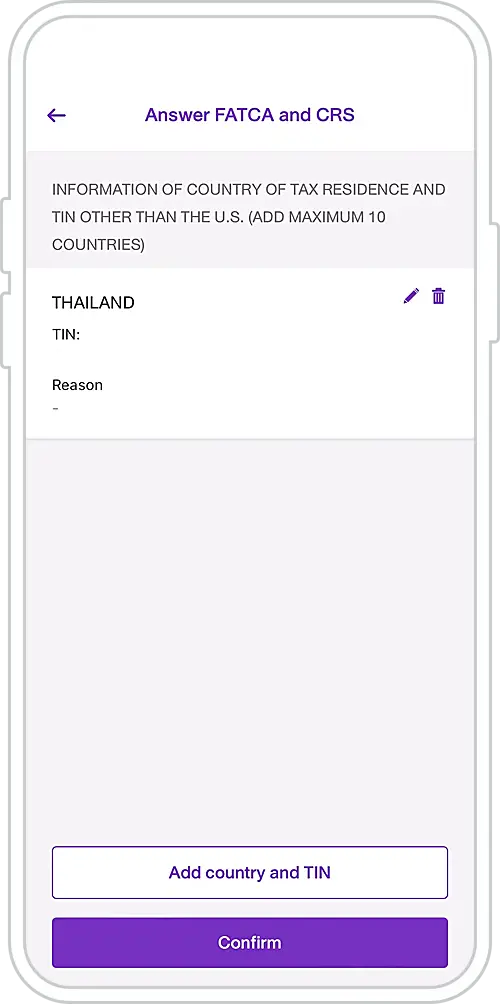 12. Review your “Taxpayer ID” and tap “Confirm”.