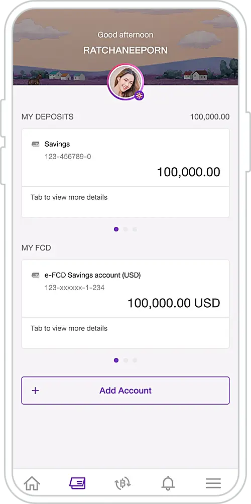 18. The e-FCD account will be automatically added to the Account Home Screen.