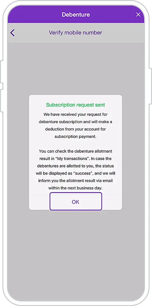 *When SCB has successfully deducted money to pay for your debenture subscription, the status of the transaction will be displayed as “Success” and the investor will receive a confirmation email within the next business day.