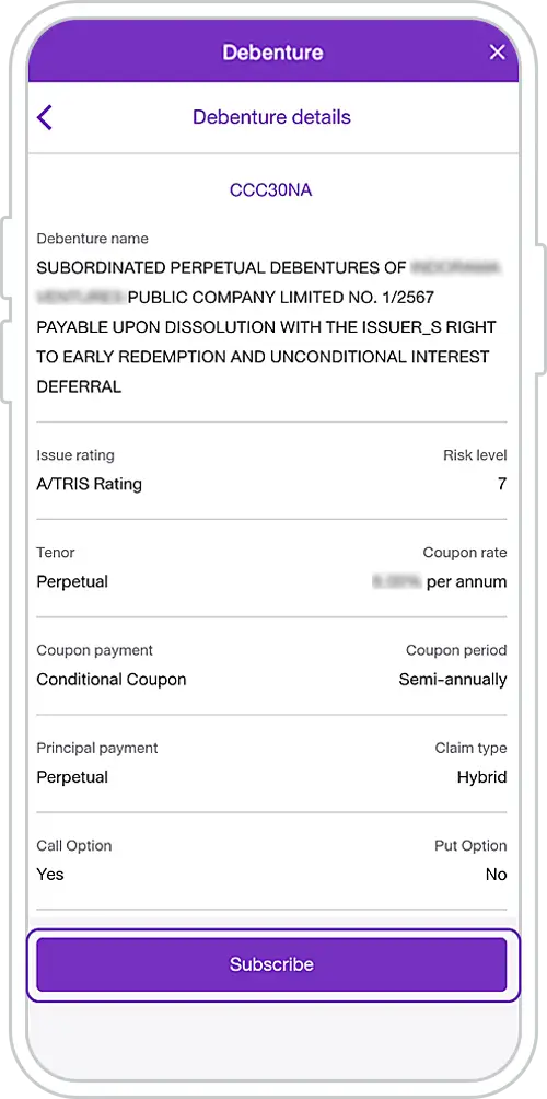2. Choose a perpetual debenture to Subscribe/Study Factsheet and Prospectus
