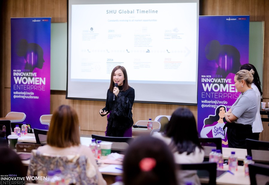 In Asia Thailand is the top country. that accepts and opens up the potential of women This can be seen from the presence of women holding important national positions. Including women who are senior executives in both public and private organizations. Here are two outstanding women behind their success in fashion and e-commerce. that has been accepted as Women at the forefront of the industry with tips for managing the organization Along with balancing family life in her own way. Khun Kornkanok Sawangruamchok, CEO of SHU GLOBAL Co., Ltd. and Khun Kulthirat Phakawat Krailet Chief Executive Officer (CEO) Thailand e-Business Center (TeC), the first female president of the Thai Electronic Operators Association or Thailand E-Commerce Association (THECA: Thai e-Commerce Association). have shared experiences The participants of the NIA X SCB Innovation-Based Enterprise (IBE) course, Class 4, Innovative Woman Enterprise, are as follows.