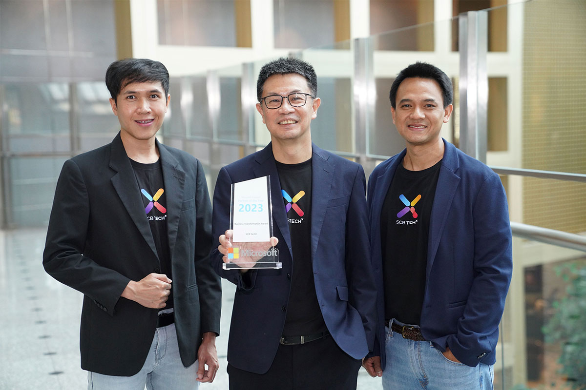 SCB TechX Co., Ltd. (SCB TechX), a leading digital technology expert specializing in application development and Platform-as-a-Service under the SCBX Group, has been honored with the Business Transformation Partner Award of the Year in the AI Innovation category at the Microsoft Thailand Partner Awards 2023. Mr. Trirat Suwanprateeb, Chief Executive Officer of SCB TechX, along with Mr. Jesada Gonkratoke, Platform Services Manager, and Mr. Krisda Ramnarong, Cloud Network and Service Integration Associate Director, announced this prestigious achievement.