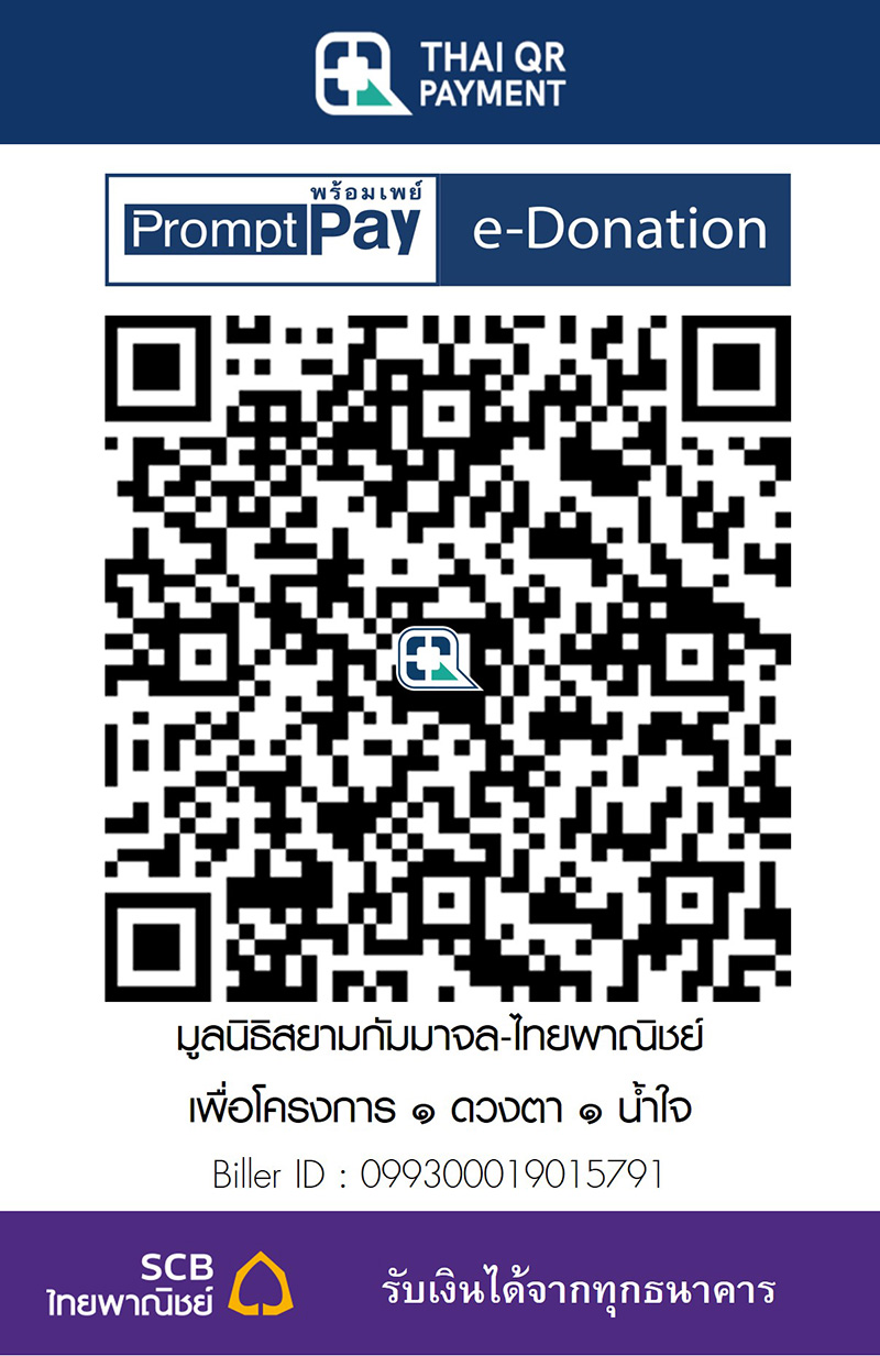 Those interested in contributing to the "Happy and Healthy People" project’s "One Eye, One Kindness" initiative can take part by scanning a QR code to make an e-donation through the mobile banking application of any bank. These donations support the efforts of volunteer doctors who deploy mobile units to provide comprehensive and equitable treatment to cataract patients, bringing back vision and happiness to their families. Every donation is eligible for a one-time tax deduction. Additionally, those who contribute 8,000 baht for one eye surgery can request a certificate by contacting 08 3811 1111.