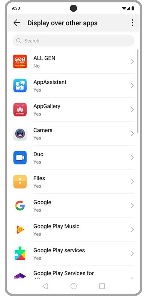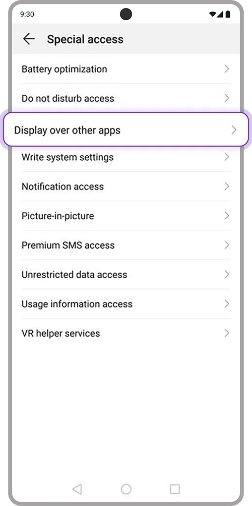 1. Turn off Display over other apps