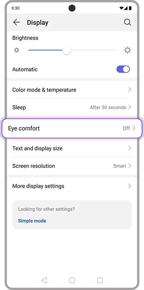 2. Select “Eye comfort”
