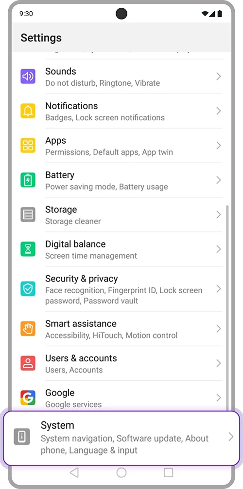 2. Search “System” > Select “System navigation”