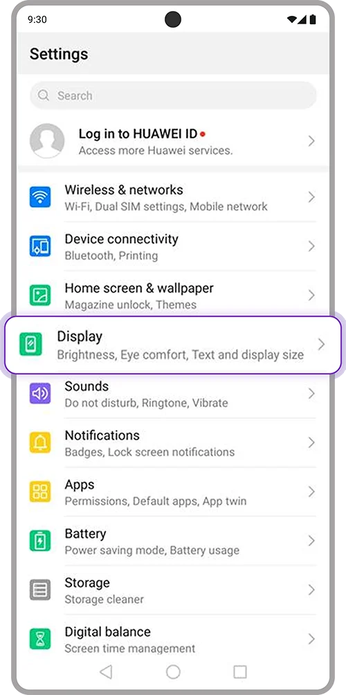 1. Open “Settings” on your device > Select “Display”