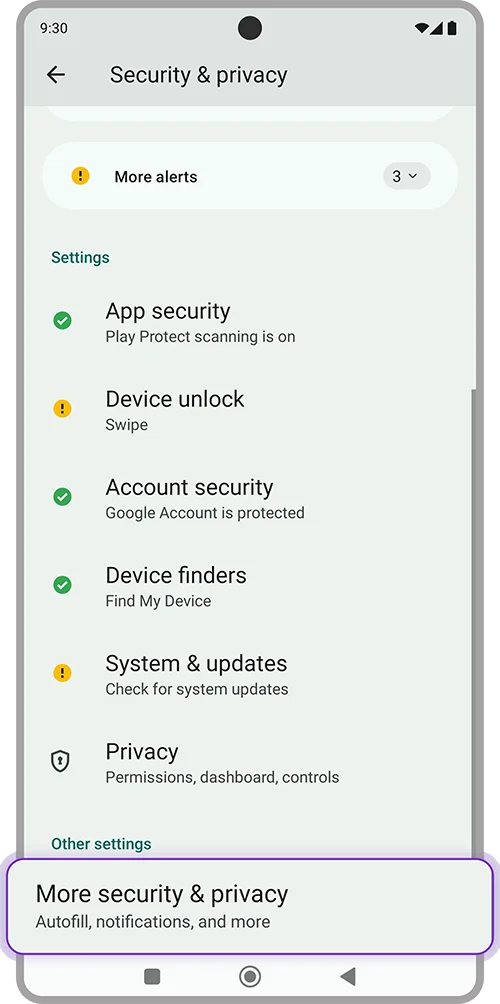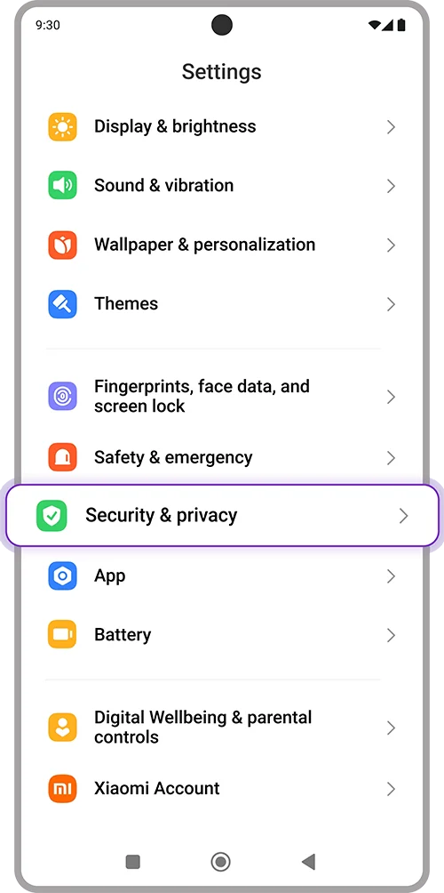 1. Open “Settings” on your device > Select “Security & Privacy”