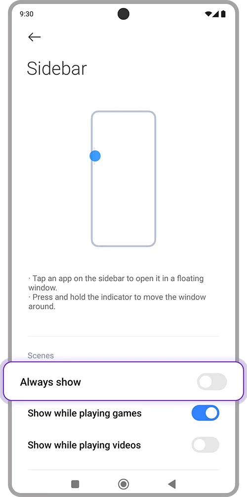4. Toggle off “Accessibility button” and open SCB EASY App again