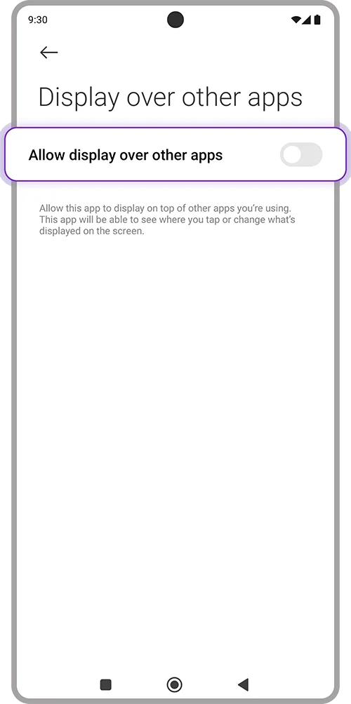 6. At applications select “Allow display over other apps” and open SCB EASY App again.