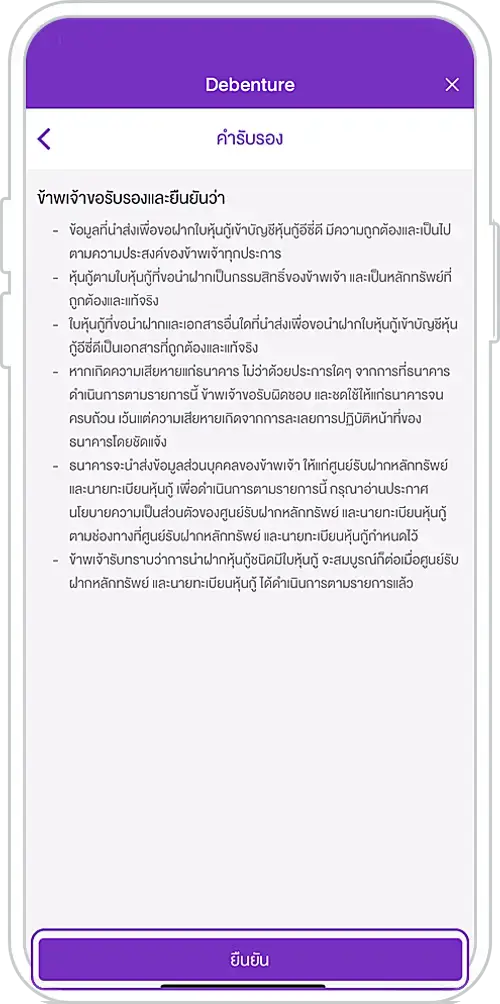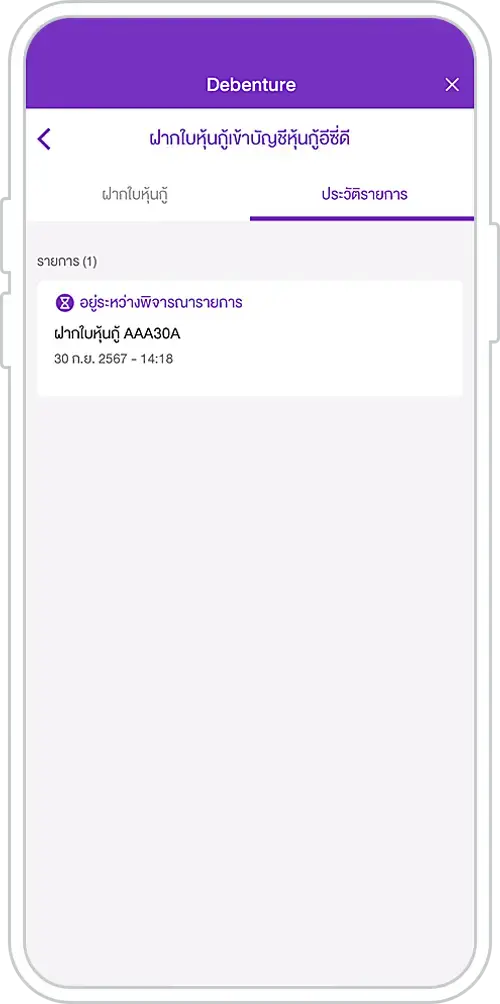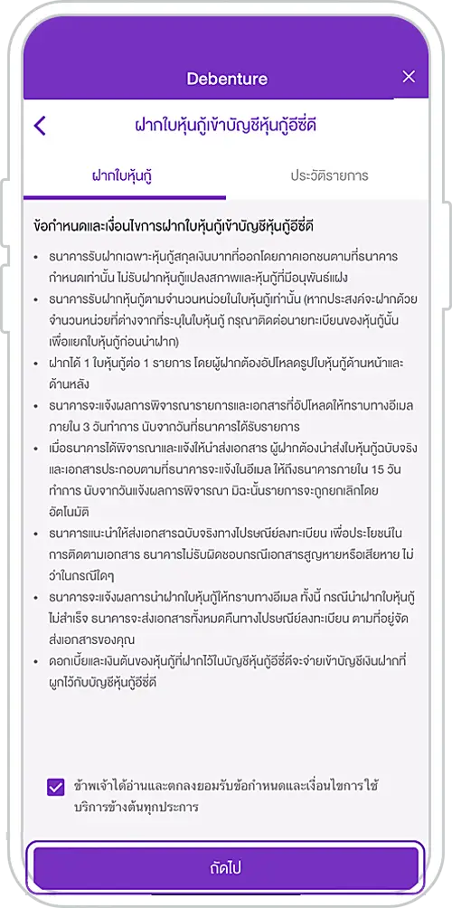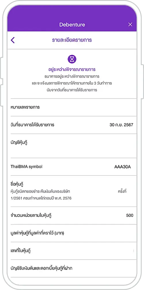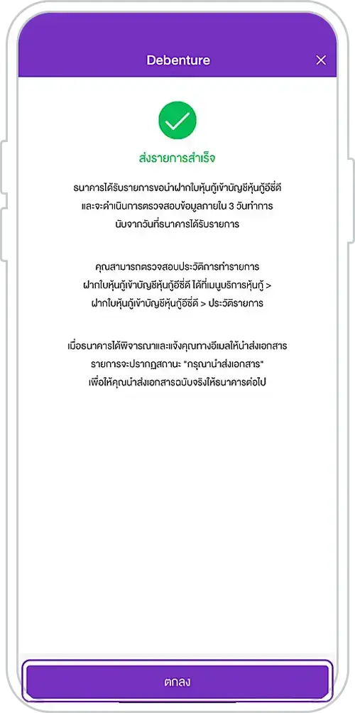 • When SCB receives the documents and approves the transaction, customer can check the status of the transaction on the SCB EASY app at the menu “Debenture” > “My Debenture” > select the debenture that the customer has requested deposit.