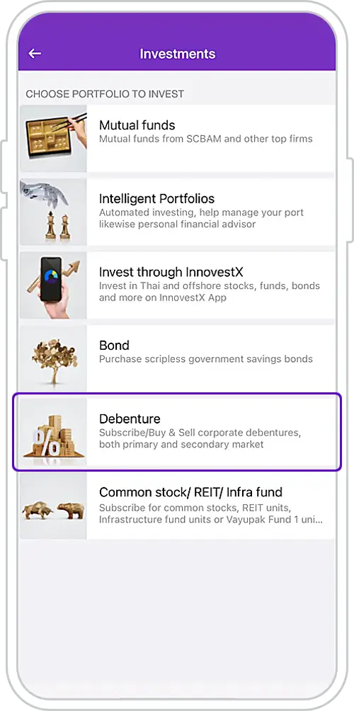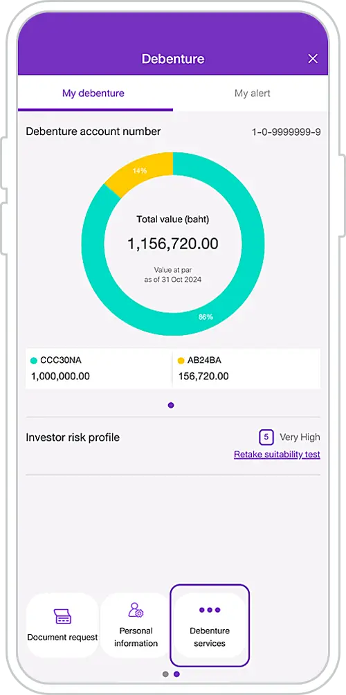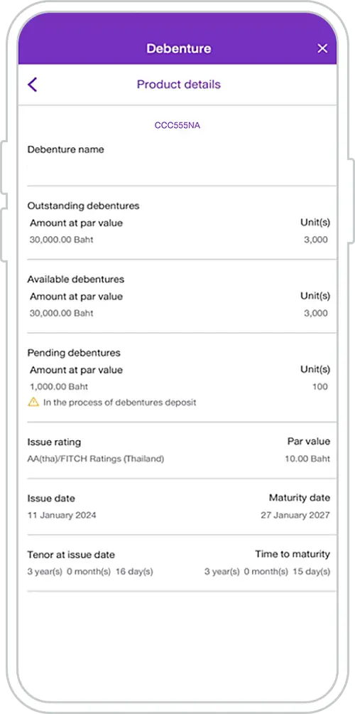 • Customer can check the debenture balance on the SCB EASY app at the menu “Debenture” > “My Debenture” > select the debenture that the customer has deposited.