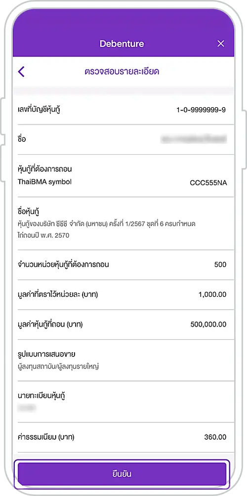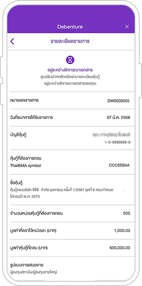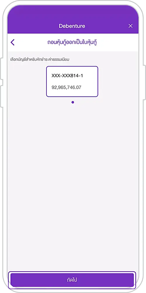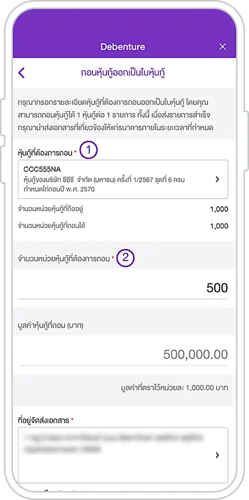 6. Select the debenture to withdraw and enter the number of units to be withdrawn