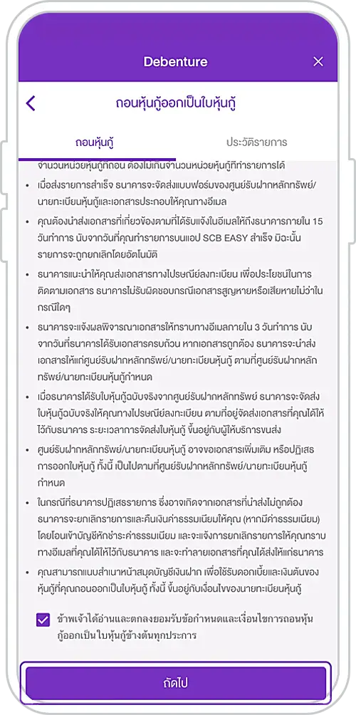 Terms and conditions for the debenture certificate withdrawal from the EASY-D Debenture Account via SCB EASY App