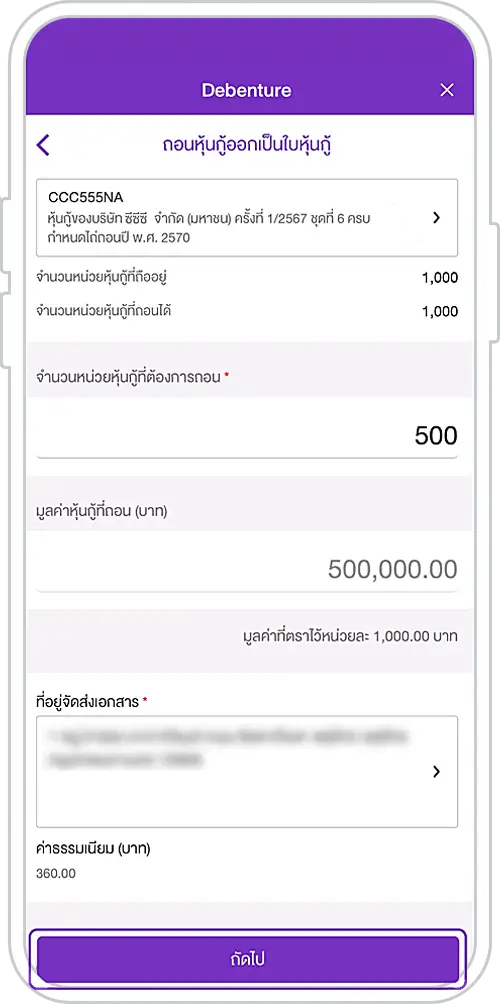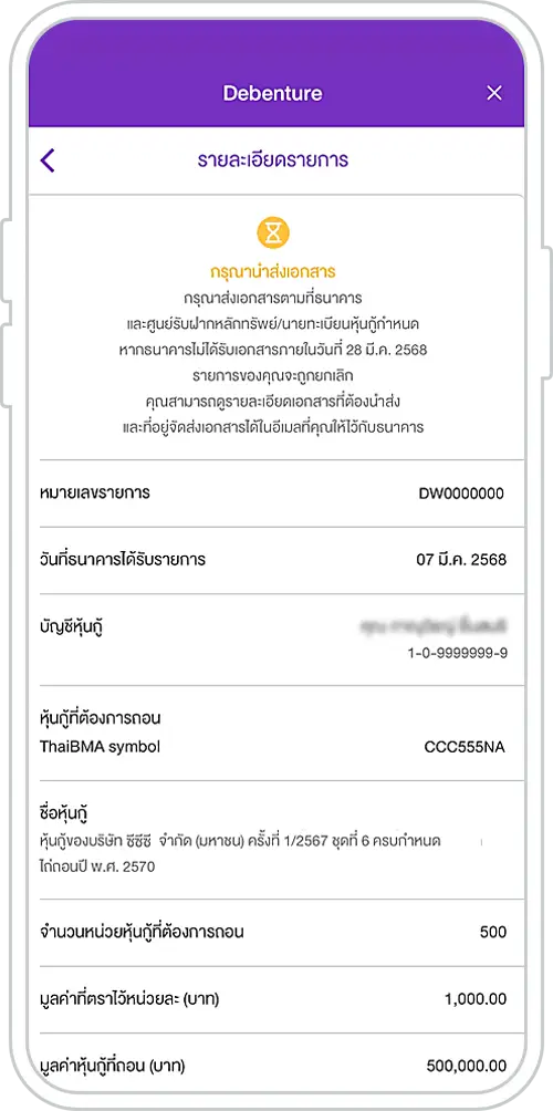 Steps to request for the debenture certificate withdrawal from the EASY-D Debenture Account via SCB EASY App