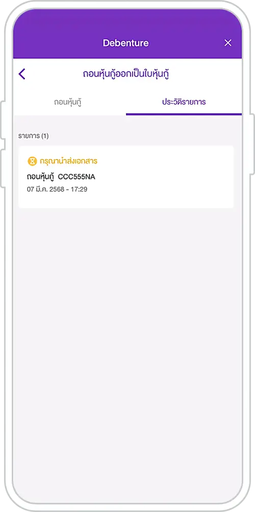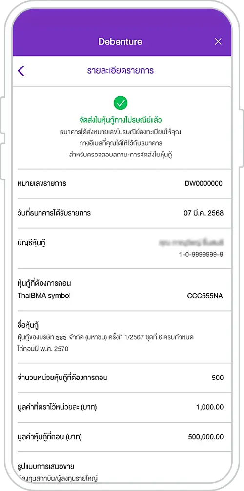 19. When SCB has sent the debenture certificate to the customer, the transaction status will display “Debenture certificate dispatched by mail”