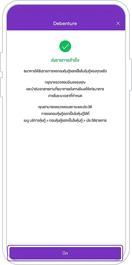 14. Send the debenture certificate deposit request successfully and press “Close”