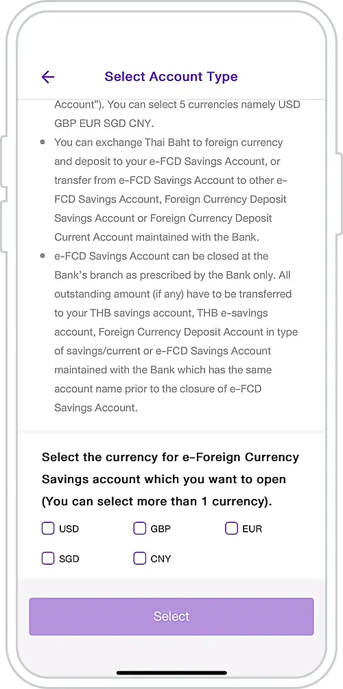4. Select the currency (or currencies) for your account.