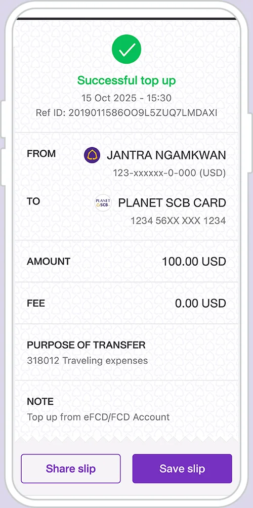 8. The transaction is complete. An e-slip will be automatically saved to your mobile phone’s album for reference.