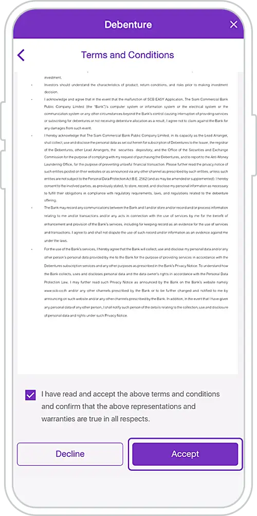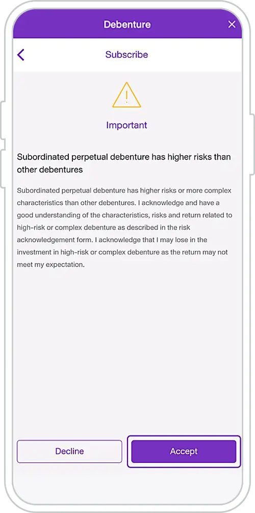 6. Study the terms and conditions of the Perpetual Debenture subscription and press “Accept”