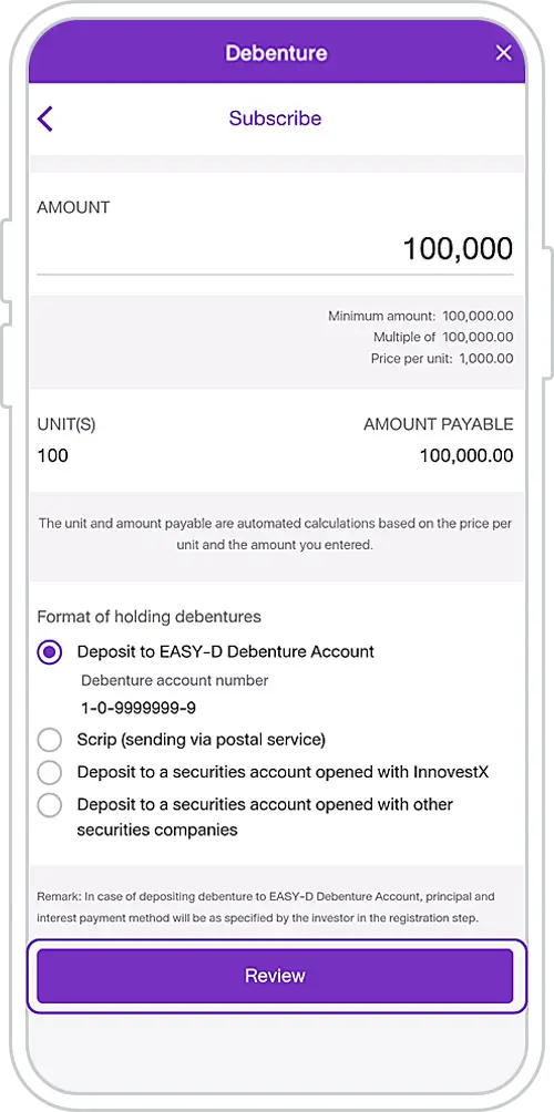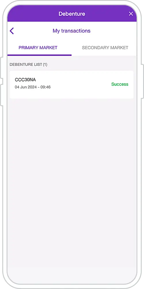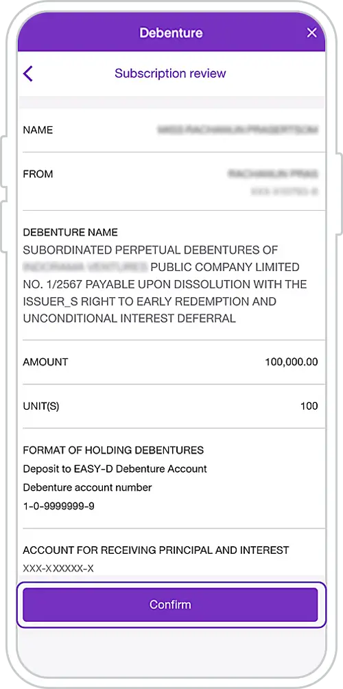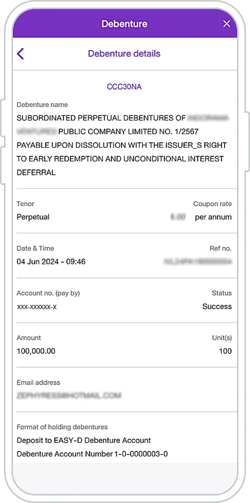 *When SCB has successfully deducted money to pay for your debenture subscription, the status of the transaction will be displayed as “Success” and the investor will receive a confirmation email within the next business day.