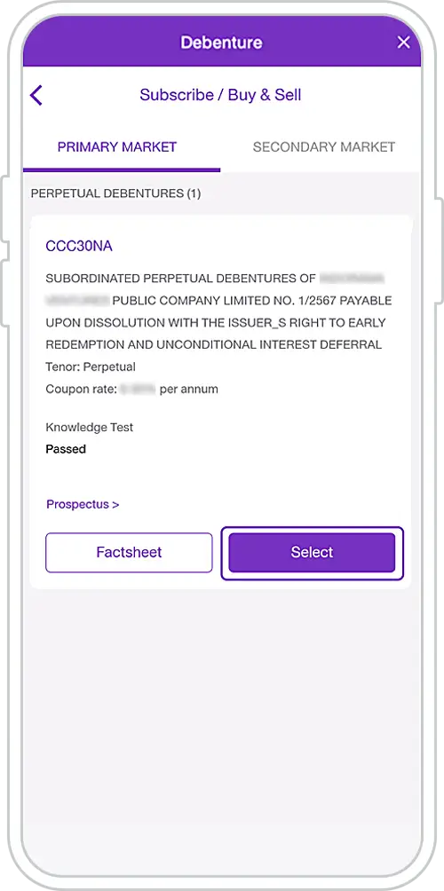 2. Choose a perpetual debenture to Subscribe/Study Factsheet and Prospectus