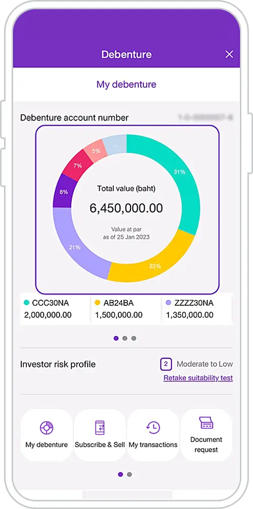 In case you select to deposit debentures with SCB in the “EASY-D Debenture Account”, the system will automatically display your debentures in “My debenture” on SCB EASY app within 7 business days after last debenture subscription date.