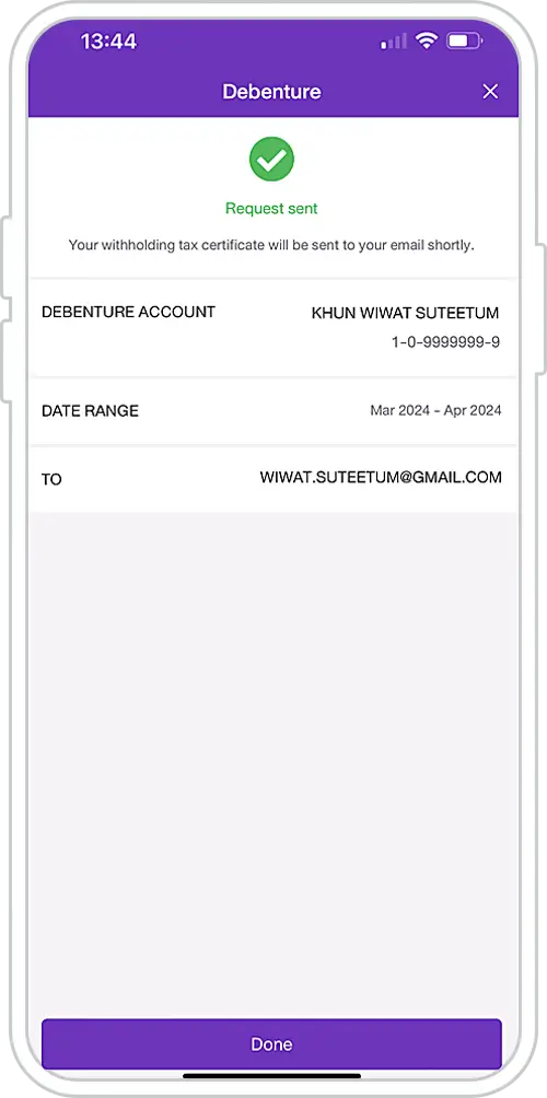 8. After the request was successfully submitted, the system will send the certificate of withholding tax to the provided email