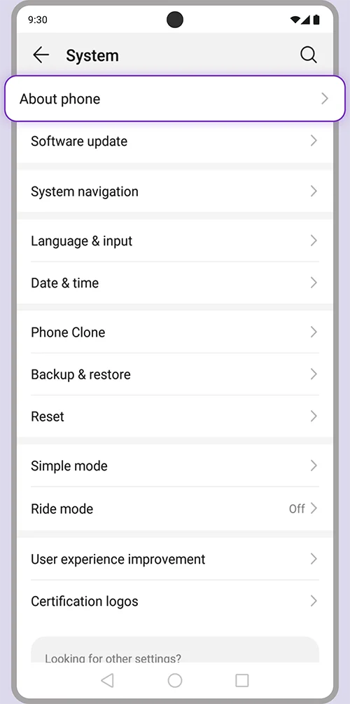 1. Go to System and select “About phone”.