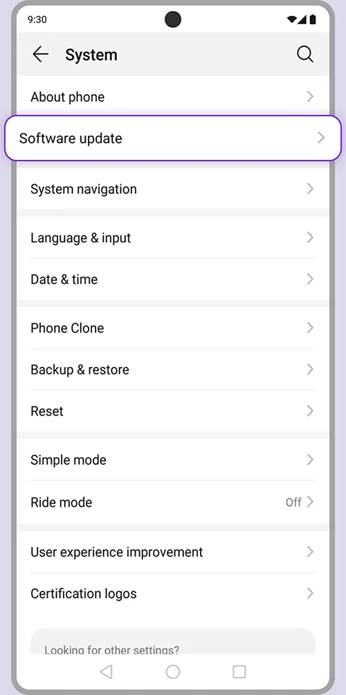 1. Go to System and select “Software update”.