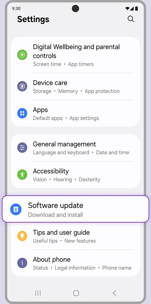 1. Go to Settings and select “Software update”.