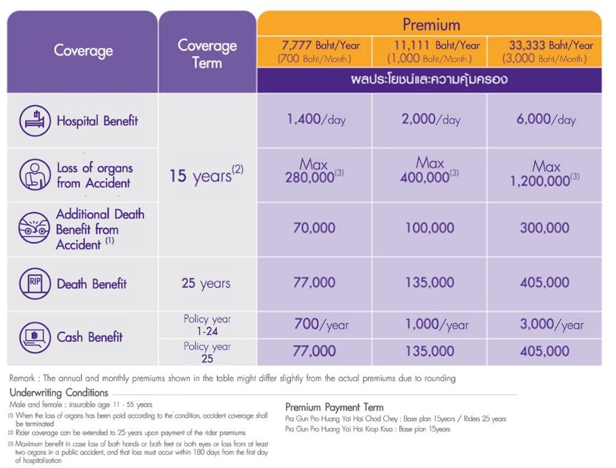 Full options of coverage; life, accident, and daily income protection
