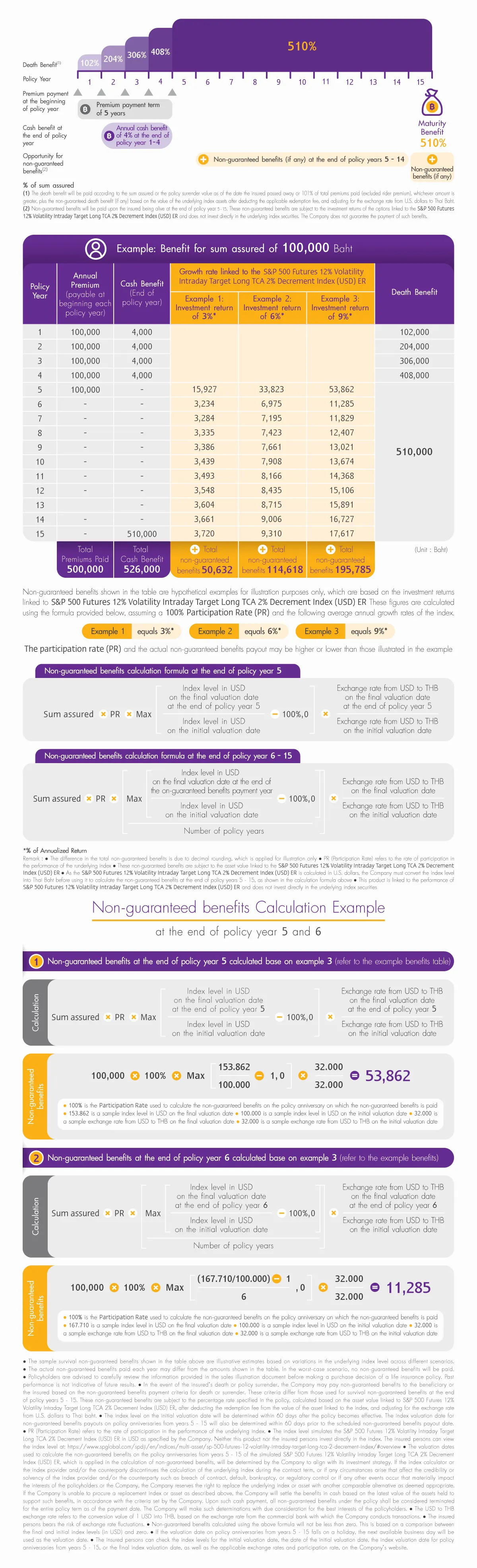 Life protection throughout the contract, up to 510% during policy years 5 to 15