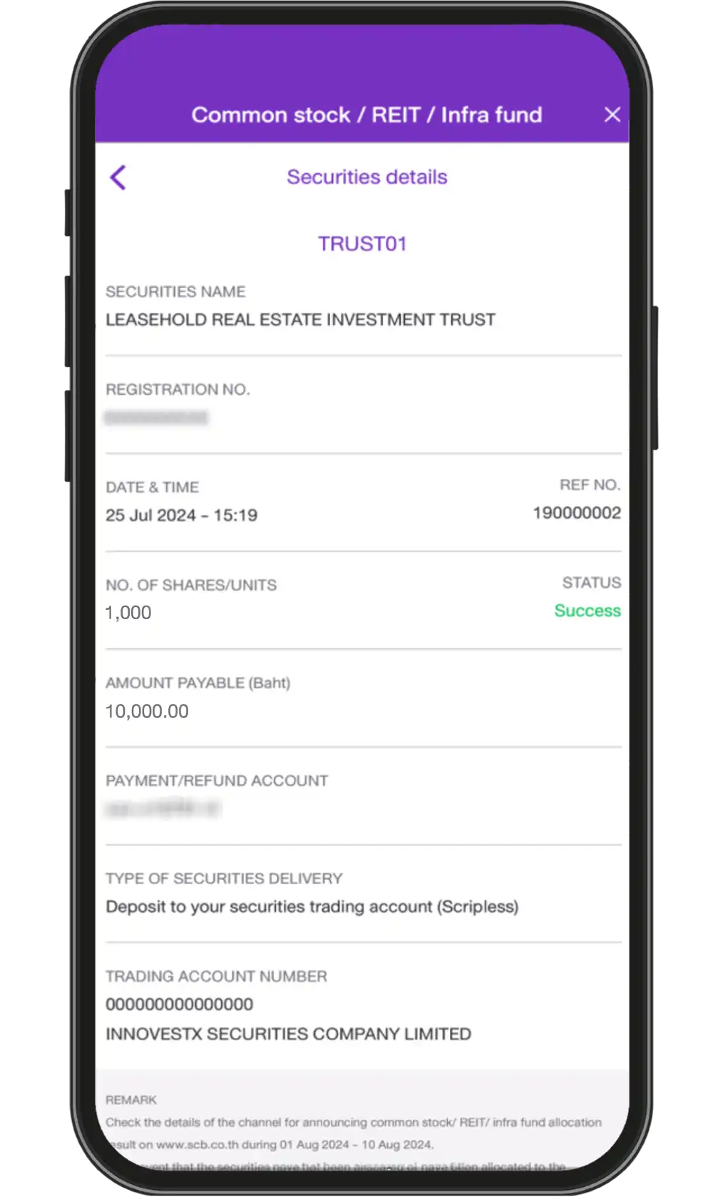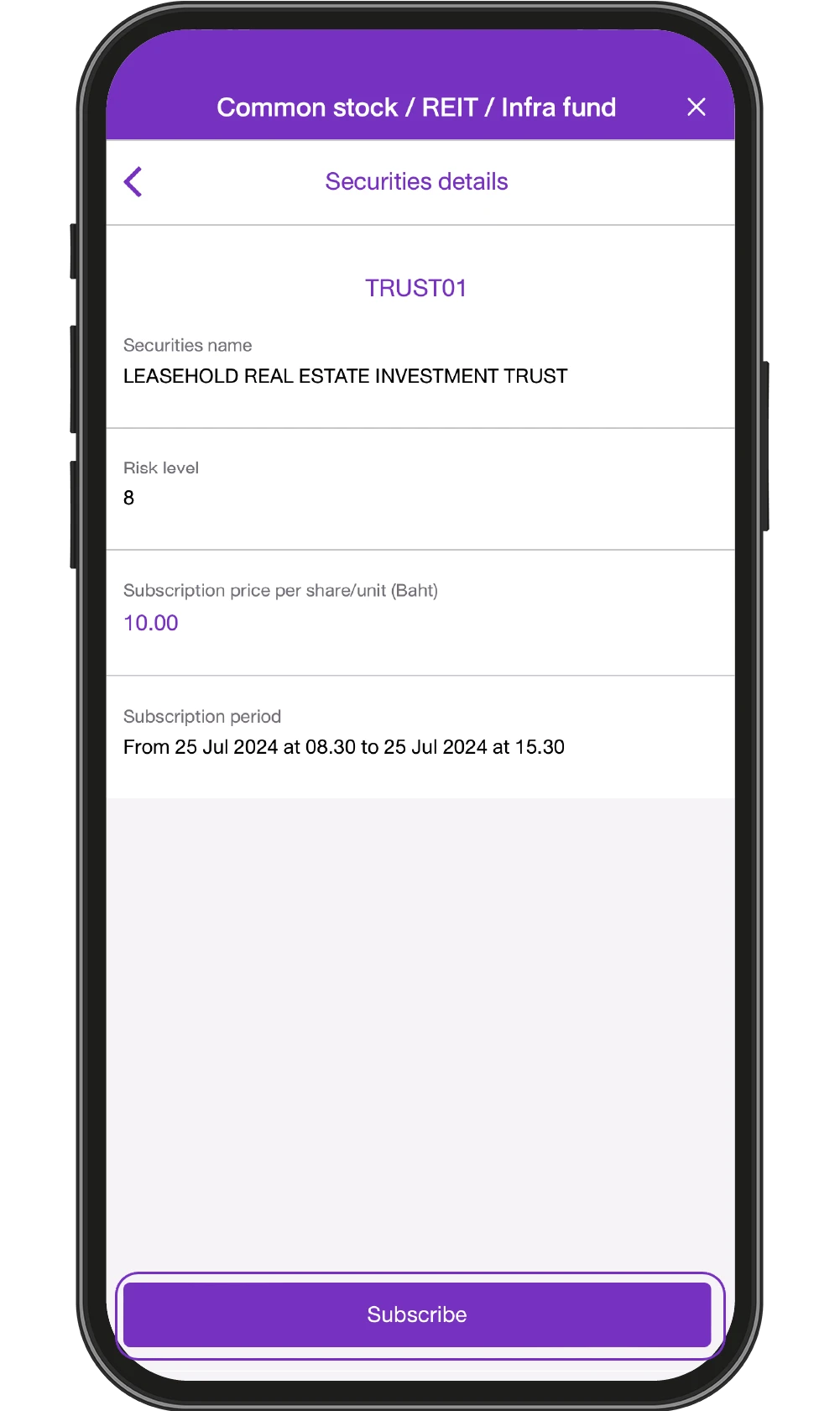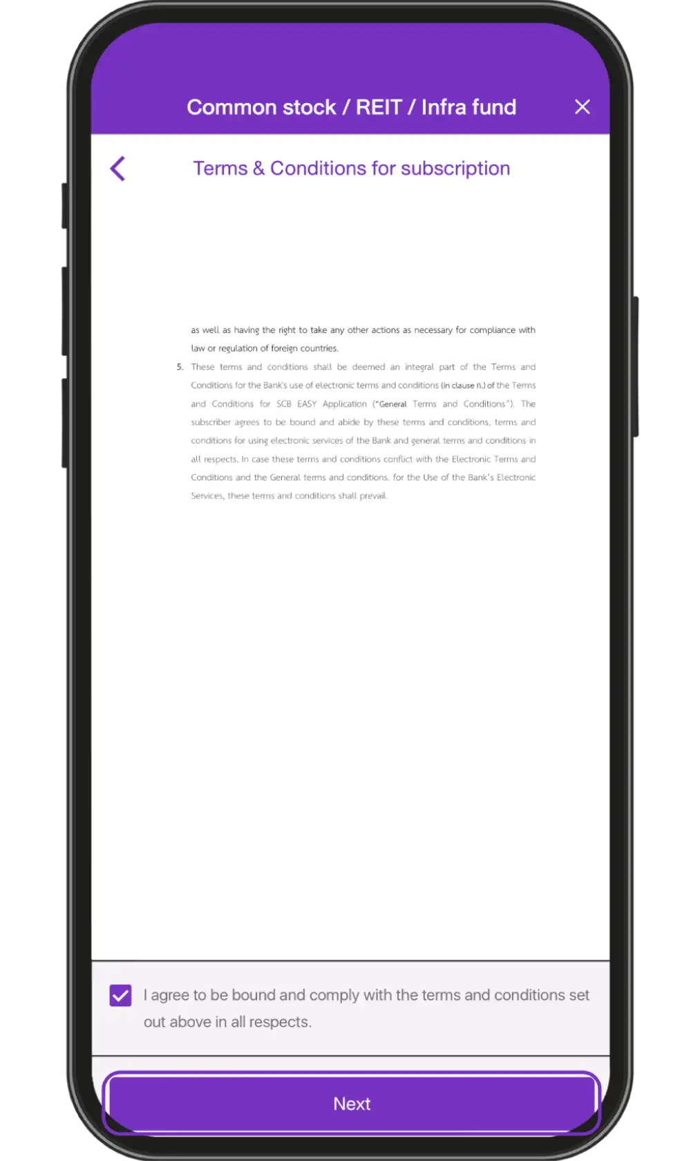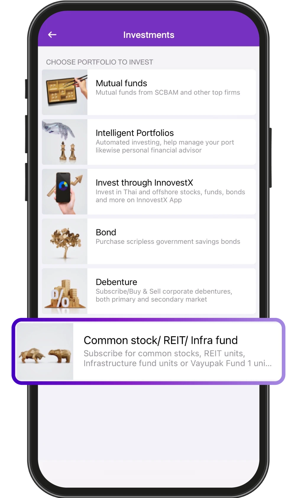 Convenient to subscribe Common stocks, REIT units or Infrastructure fund units via SCB EASY App: