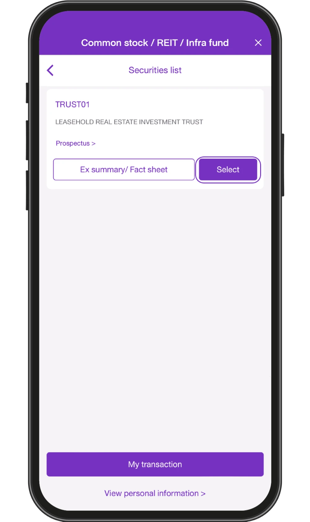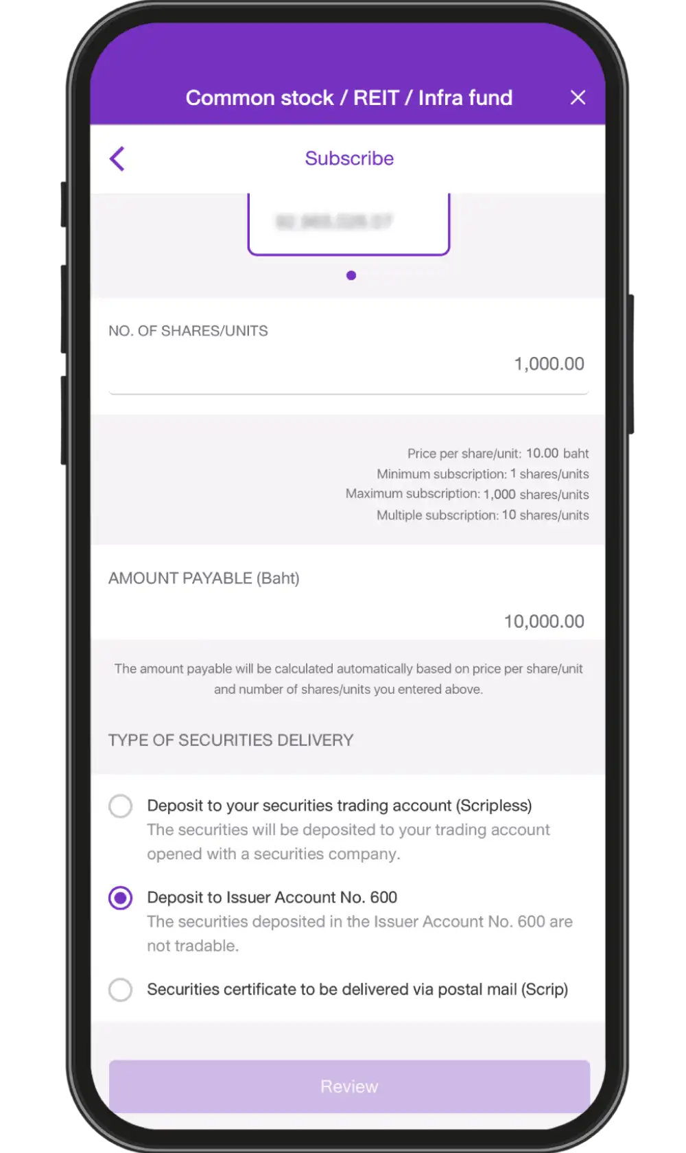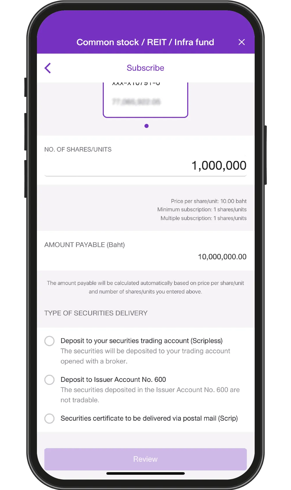Convenient to subscribe Common stocks, REIT units or Infrastructure fund units via SCB EASY App: