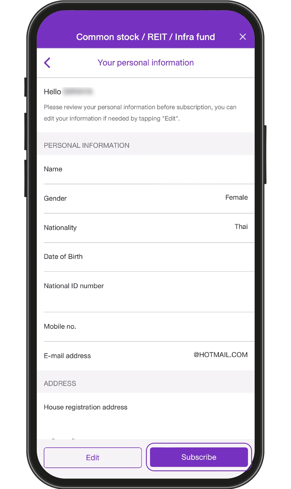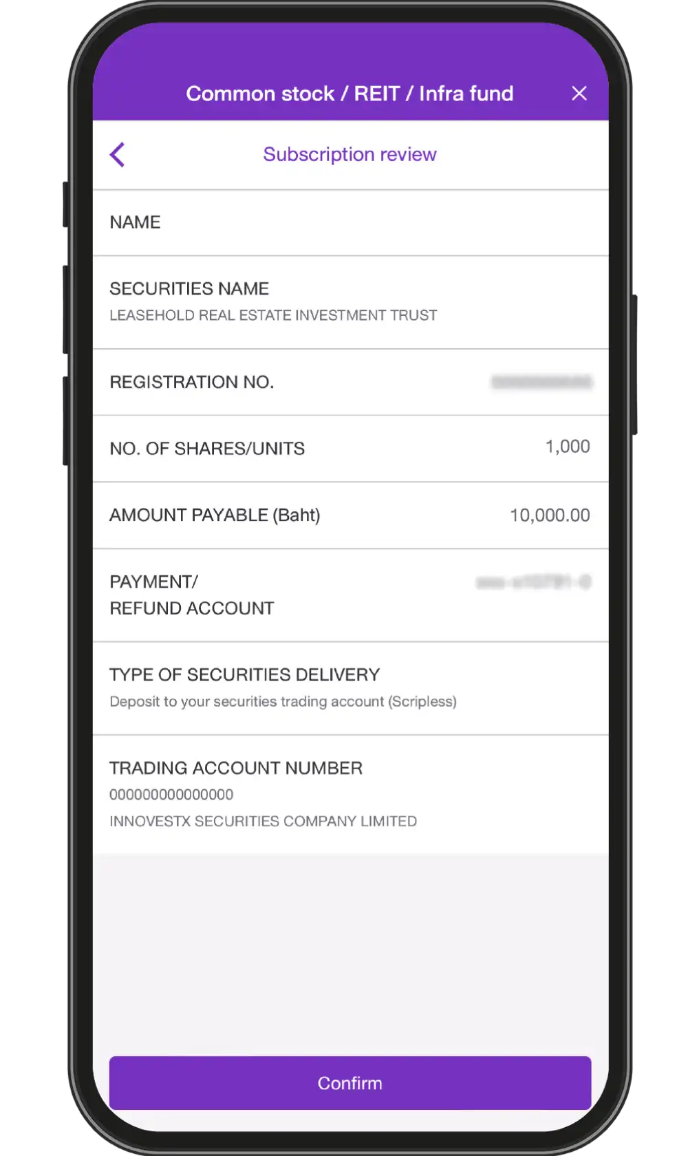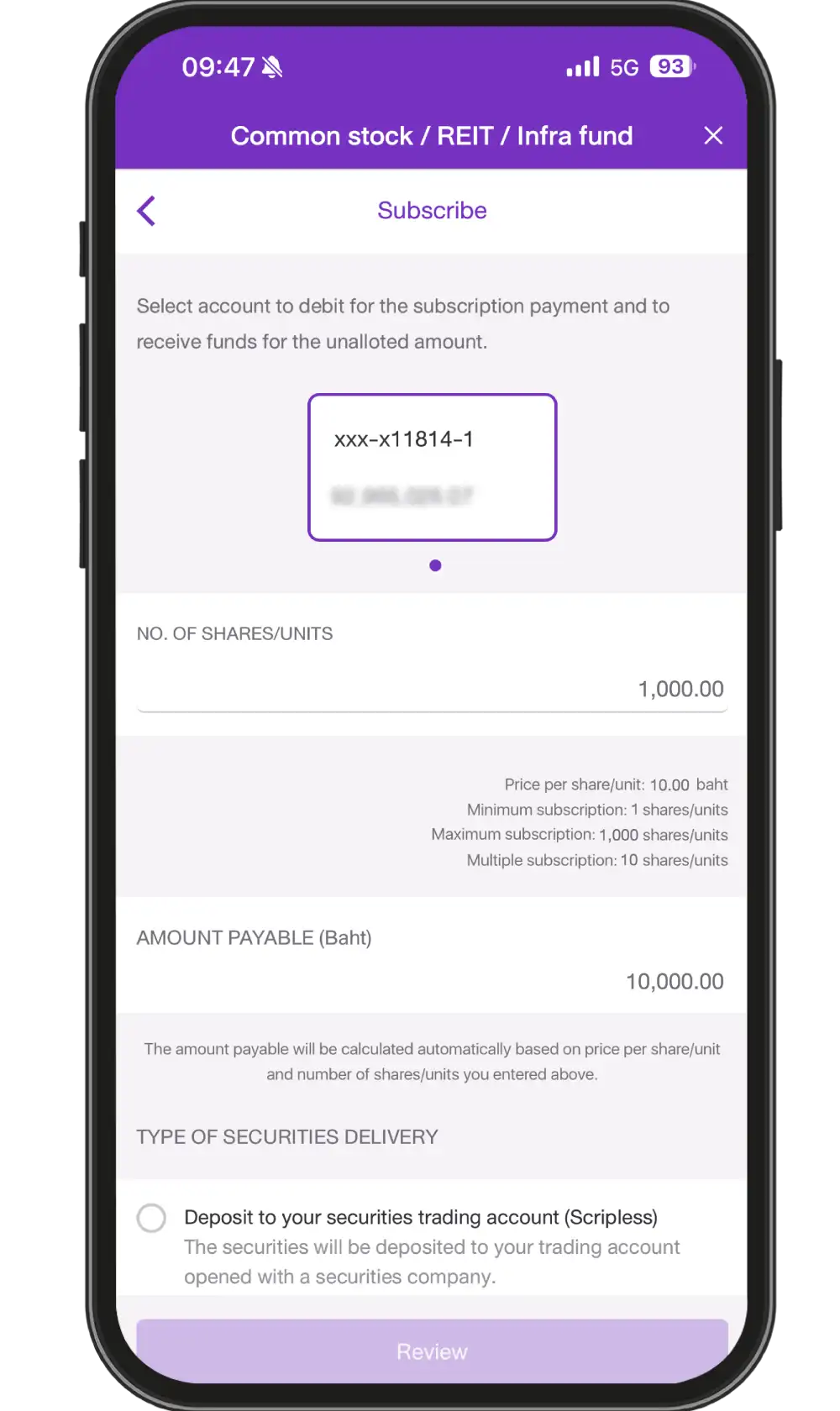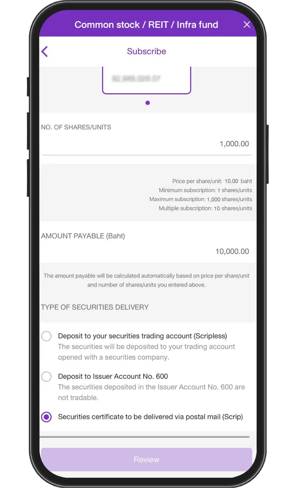 Convenient to subscribe Common stocks, REIT units or Infrastructure fund units via SCB EASY App: