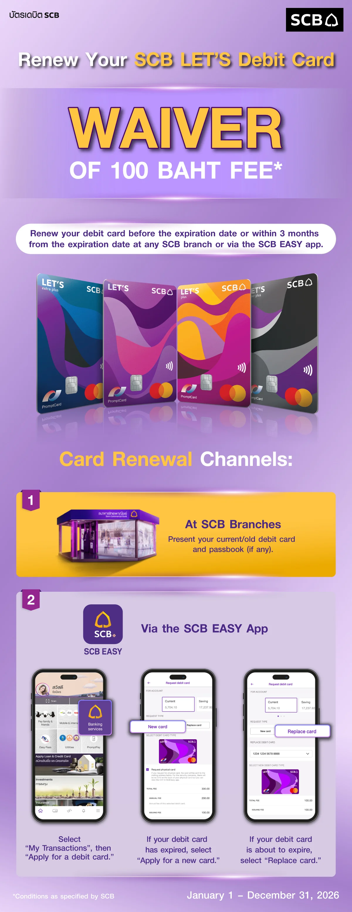 Fee Waiver for SCB Debit Mastercard Renewal from January 1 to December 31, 2026