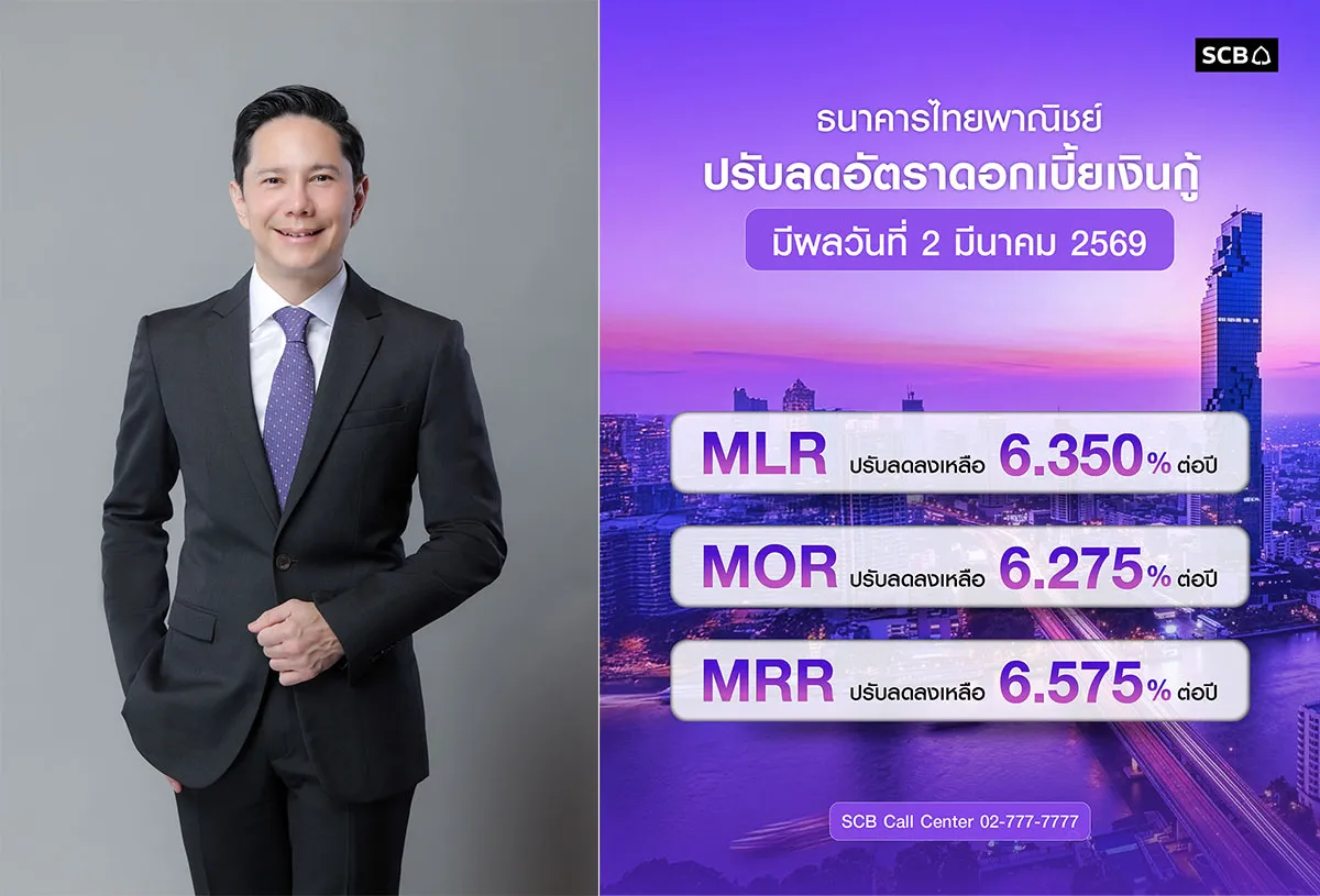 นายกฤษณ์ จันทโนทก ประธานเจ้าหน้าที่บริหาร ธนาคารไทยพาณิชย์ จำกัด (มหาชน) กล่าวว่า เศรษฐกิจไทยยังเติบโตต่ำกว่าศักยภาพและไม่ทั่วถึง โดยเฉพาะกลุ่ม SMEs และครัวเรือนที่ยังเผชิญข้อจำกัดด้านต้นทุนทางการเงินและสภาพคล่อง ประกอบกับปัจจัยกดดันจากภายนอก ทั้งประเด็นภูมิรัฐศาสตร์ และนโยบายภาษีนำเข้าของสหรัฐฯ ที่มีความไม่แน่นอนสูงขึ้น ทั้งนี้ เพื่อให้สอดคล้องกับทิศทางนโยบายของธนาคารแห่งประเทศไทย และเพื่อช่วยบรรเทาภาระดอกเบี้ยให้แก่ลูกค้าของธนาคาร ธนาคารจึงปรับลดอัตราดอกเบี้ยเงินกู้ ลูกค้ารายใหญ่ชั้นดี ประเภทเงินกู้แบบมีระยะเวลา (MLR : Minimum Loan Rate) เหลือ 6.350% ต่อปี อัตราดอกเบี้ยเงินกู้ลูกค้ารายใหญ่ชั้นดี ประเภทเงินเบิกเกินบัญชี (MOR : Minimum Overdraft Rate) เหลือ 6.275% ต่อปี และอัตราดอกเบี้ยเงินกู้ลูกค้ารายย่อยชั้นดี (MRR : Minimum Retail Rate) ปรับลดลงเหลือ 6.575% ต่อปี มีผลตั้งแต่วันที่ 2 มีนาคม 2569 เป็นต้นไป