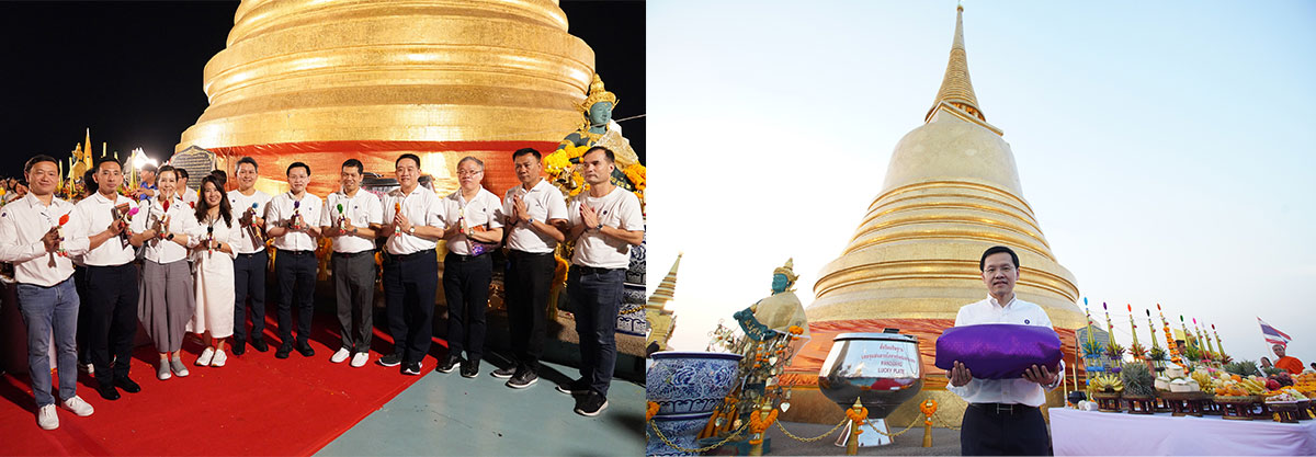 ธนาคารไทยพาณิชย์ นำโดย นายวิฑูรย์ พรสกุลวานิช รองผู้จัดการใหญ่อาวุโส ประธานเจ้าหน้าที่บริหาร กลุ่มธุรกิจ Integrated Channels และรักษาการ รองผู้จัดการใหญ่อาวุโส ประธานเจ้าหน้าที่บริหาร กลุ่มธุรกิจ Retail and Business Banking และ นายเสกสรรค์ พรไพรินทร์ รองผู้จัดการใหญ่ ผู้บริหารสายงาน Branch Distribution Network พร้อมด้วยคณะผู้บริหารกลุ่มธุรกิจ Integrated Channels จำนวนกว่า 120 ท่าน เข้าร่วมพิธีบวงสรวงเทพยดา สวดนพเคราะห์ และห่มผ้าแดง, ม่วง พระบรมบรรพต (ภูเขาทอง) เพื่อเริ่มต้นพุทธศักราชใหม่ด้วยความเป็นสิริมงคล ตามโครงการ “สวดมนต์ กับ ๙ แรก แจกความปัง ดังตลอดปี” ด้วยการสวดมนต์บูชานพเคราะห์ ตามประเพณีอันศักดิ์สิทธิ์ของพระสงฆ์หนึ่งเดียวในประเทศไทยที่ยังดำรงไว้ตั้งแต่สมัยโบราณจนถึงปัจจุบัน และยึดถือปฏิบัติมายาวนานกว่า 187 ปี พร้อมด้วยพิธีอัญเชิญผ้าแดง, ม่วง เพื่อห่มรอบองค์พระบรมบรรพต (ภูเขาทอง) เพื่อนมัสการพระบรมสารีริกธาตุ เป็นการสร้างขวัญกำลังใจให้กับพนักงานธนาคารฯ ให้ได้รับผลบุญโดยทั่วกัน ตลอดจนก่อให้เกิดความร่มเย็นเป็นสุขให้แก่ชีวิตและเป็นการอนุรักษ์สืบสานประเพณีอันดีงามของชาติให้คงอยู่ยั่งยืนสืบไป โดยกิจกรรมฯ ได้จัดขึ้นเมื่อวันที่ 9 มกราคม 2567 ซึ่งนับว่าเป็น 9 แรกของปีพุทธศักราช ณ สะดือประเทศ พระบรมบรรพต (ภูเขาทอง) วัดสระเกศราชวรมหาวิหาร