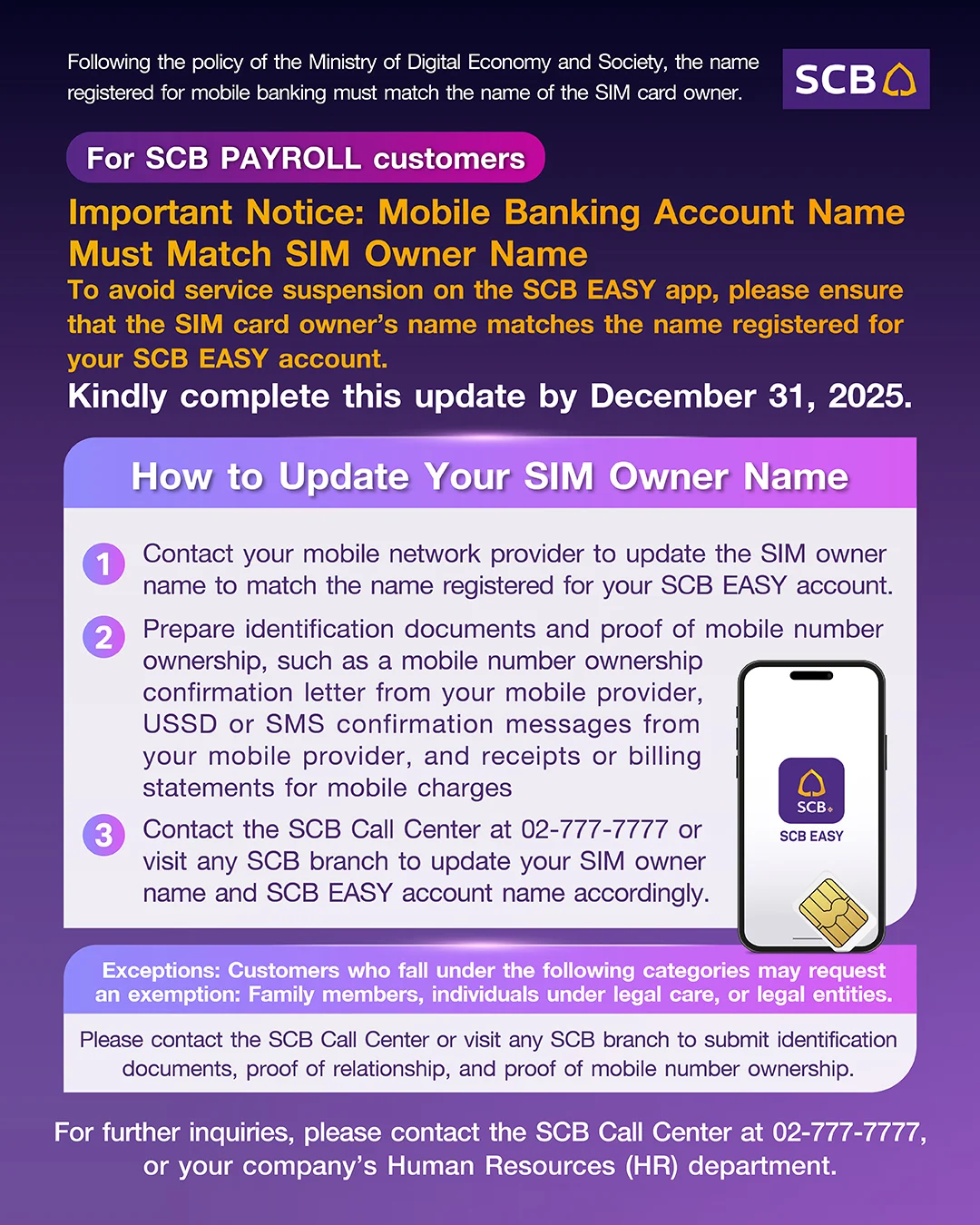 เพื่อป้องการถูกระงับการใช้บริการแแอป SCB EASY