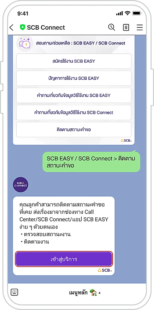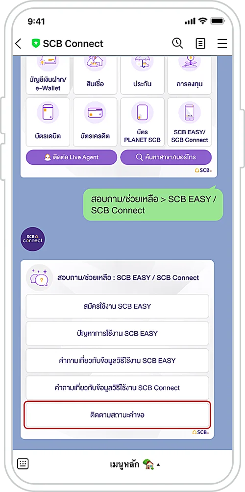 เลือกเมนู “สอบถาม/ช่วยเหลือ”