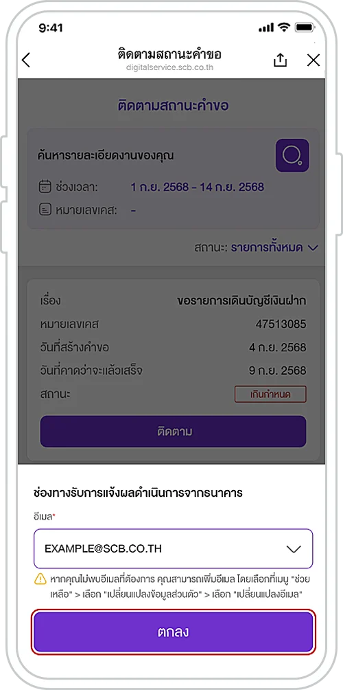ระบบจะแจ้งรายละเอียดและสถานะ