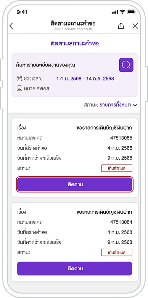 สามารถกดปุ่ม “ติดตาม” สำหรับ