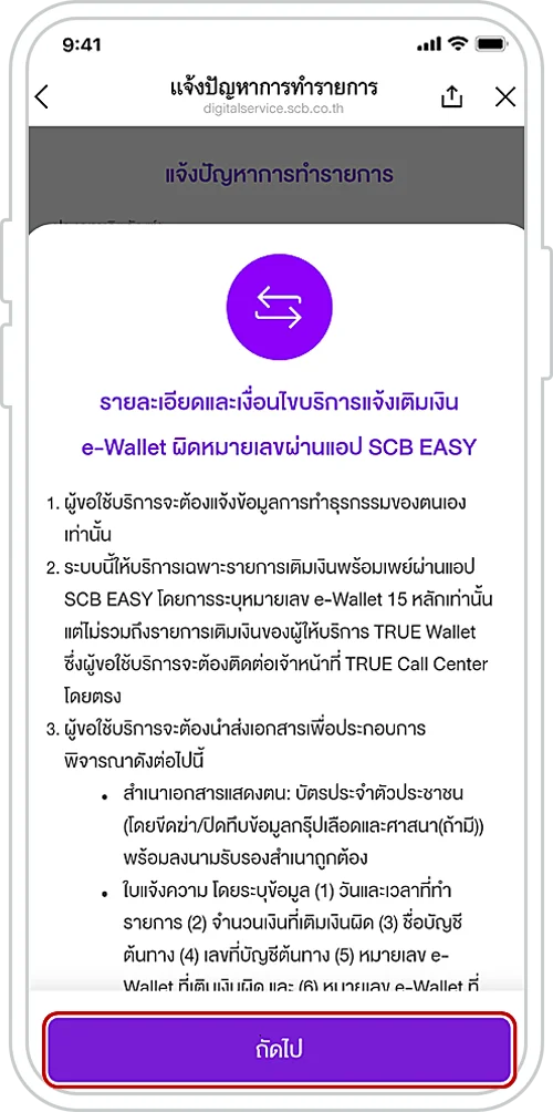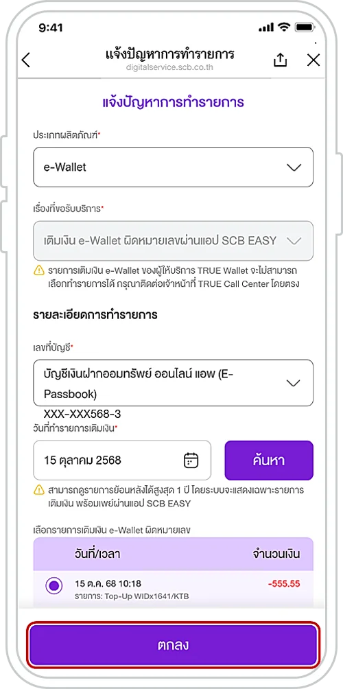 เลือก “แจ้งปัญหาการทำรายการ”
