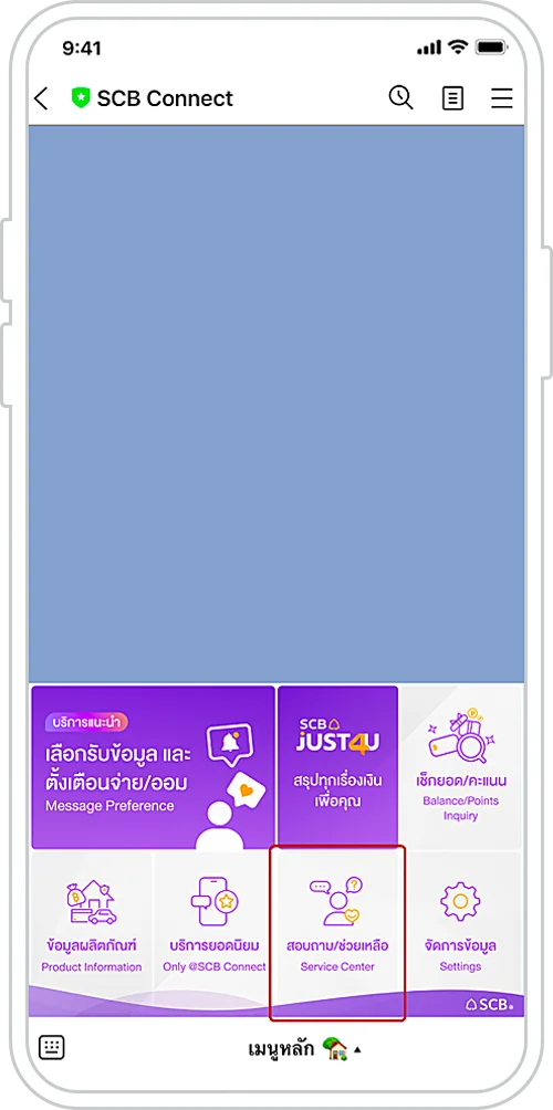 เลือกเมนู “สอบถาม/ช่วยเหลือ”