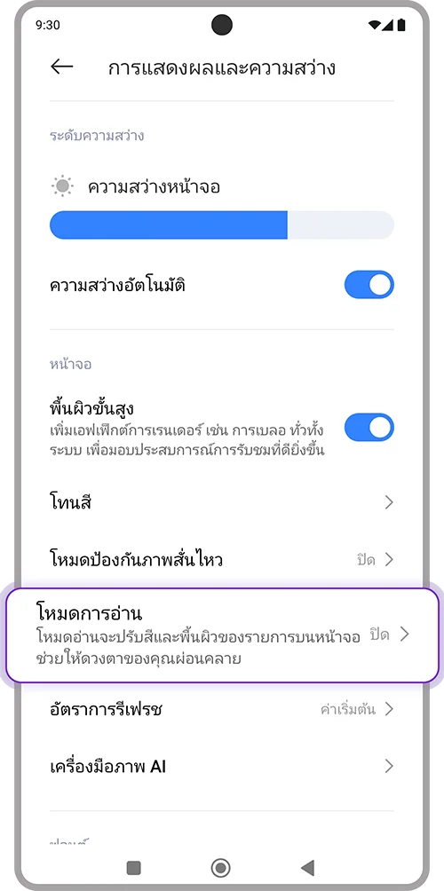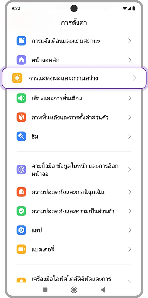 1. เปิด “การตั้งค่า” บนอุปกรณ์ของคุณ > เลือก “การแสดงผลและความสว่าง”
