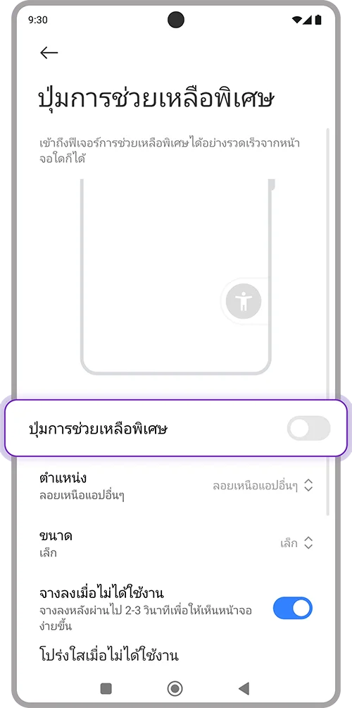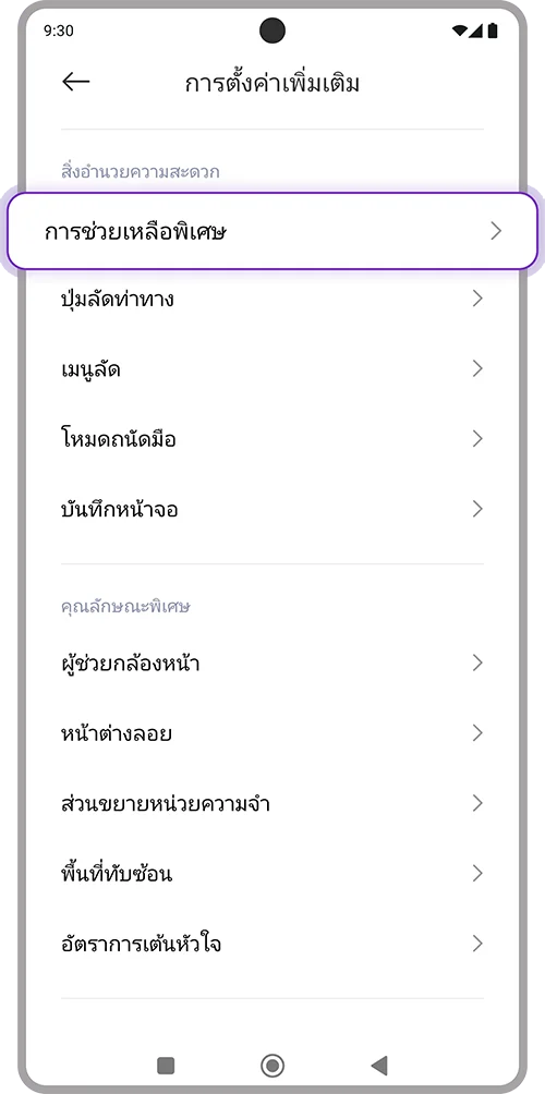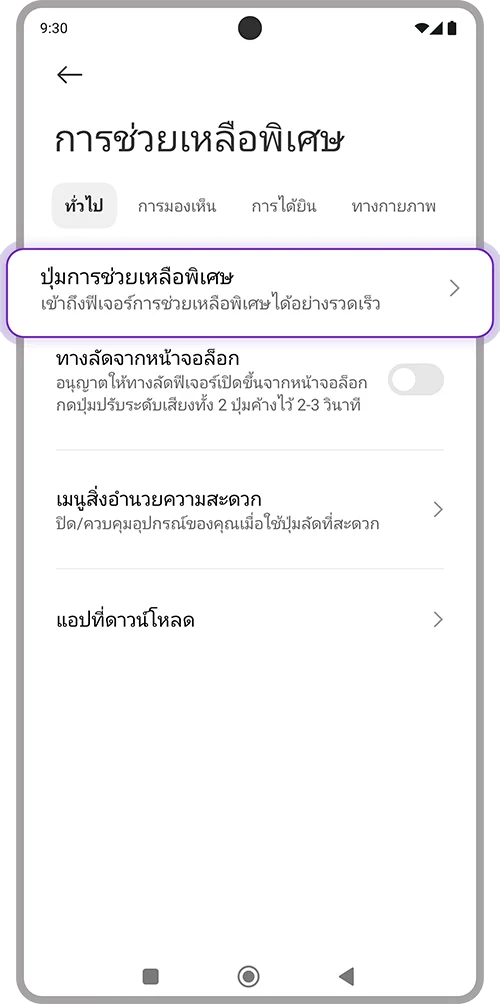 3. เลือก “ปุ่มการช่วยเหลือพิเศษ”