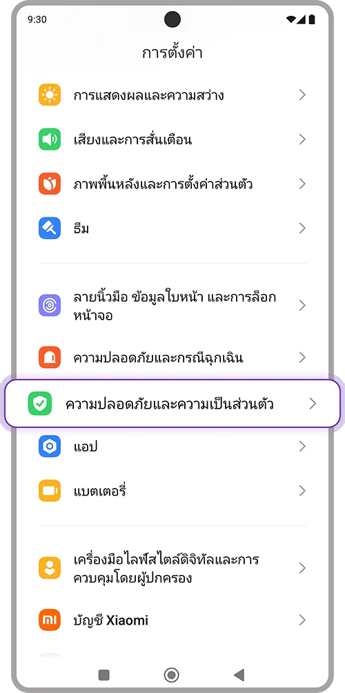 1. เปิด “การตั้งค่า” บนอุปกรณ์ของคุณ > เลือก “ความปลอดภัยและความเป็นส่วนตัว”